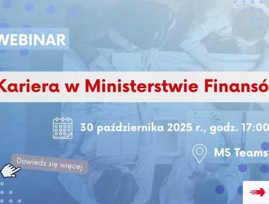 Zapraszamy studentów zainteresowanych poznaniem ścieżki rozwoju w Ministerstwie Finansów, na spotkanie z przedstawicielem jednego z najważniejszych urzędów administracji rządowej w Polsce.